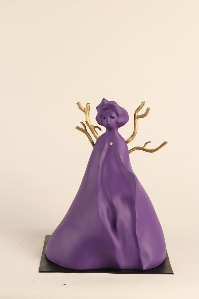Manifiesto: Esta obra reúne varios elementos que están presentes en mi obra escultórica, se observa un cuerpo meditando y con la mirada en el horizonte, también unas ramas que salen del centro de la obra.