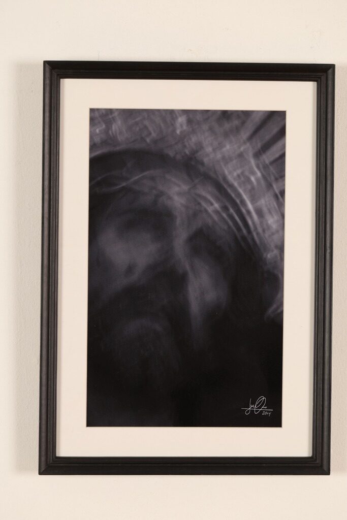 Manifiesto: La obra presenta la imagen distorsionada del rostro de Cristo Jesús, en los momentos de agonía en la cruz.